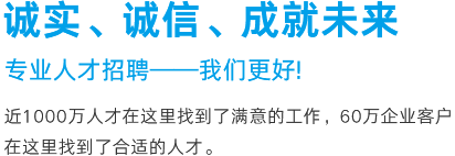 英才網(wǎng)聯(lián)勵精圖治十余年,專注分行業(yè)專業(yè)人才招聘服務(wù),深刻理解企業(yè)用人之道,幫助客戶選好人才用好人才,自成立之初始終堅持誠實、誠信的態(tài)度服務(wù)廣大客戶,拒絕虛假招聘信息,堅持優(yōu)質(zhì)服務(wù)品質(zhì),已經(jīng)成為“建筑、化工、醫(yī)藥醫(yī)療、金融”等行業(yè)專業(yè)人才招聘的首選網(wǎng)站。